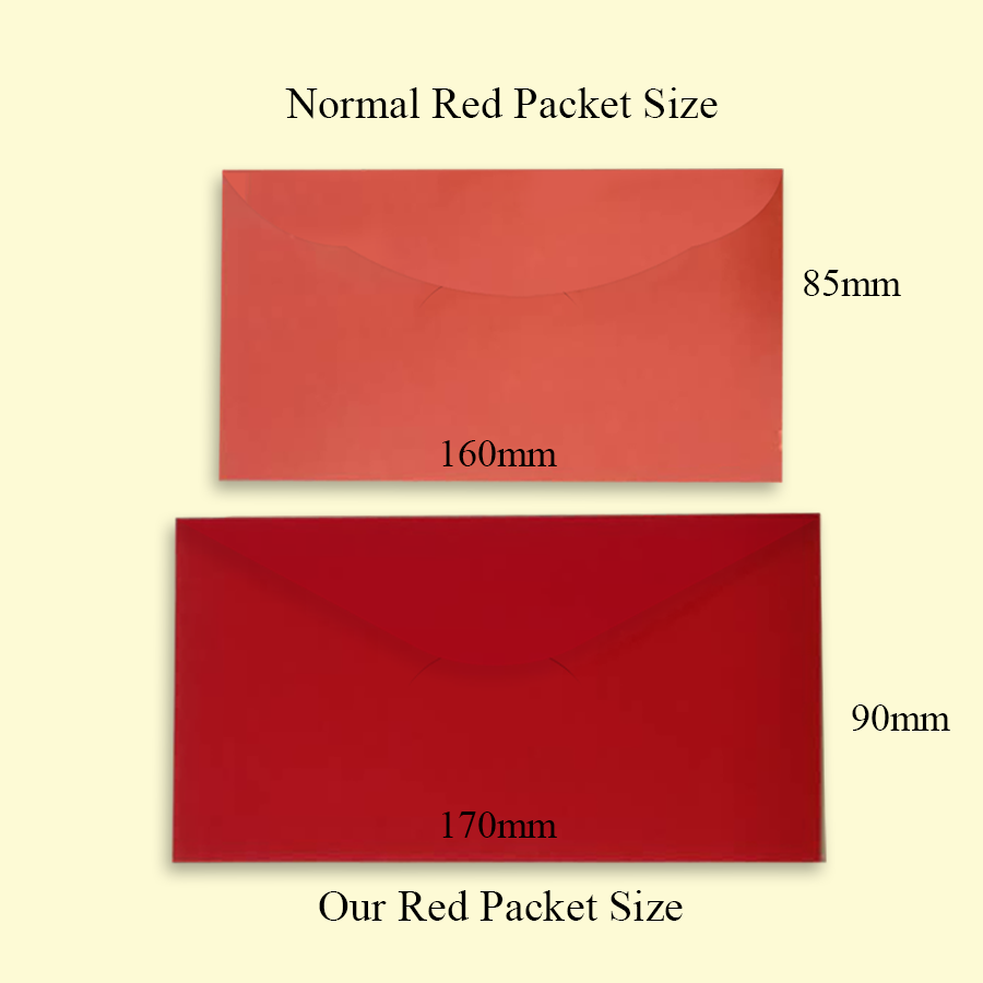 Premium Velvet paper material is available with big note sizes. May these premium red packets help symbolise your company image and branding!